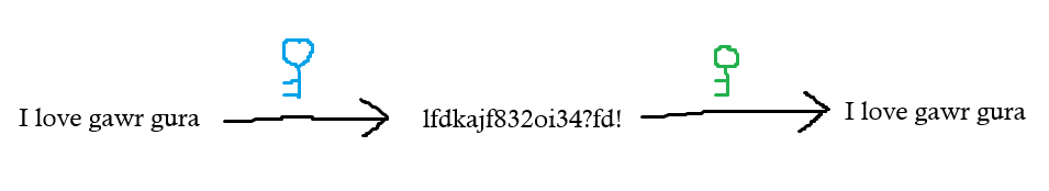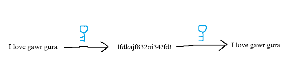 To other people this text is just a random scrambled text, but the person with the key or password can turn it back into "I love gawr gura".