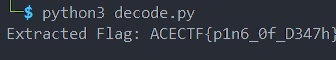 | [HeaderHijack](https://aurichia.gitbook.io/aurichia-docs/ctfs-tours/2025/ace-ctf#headerhijack)                                                   | Steganography       |